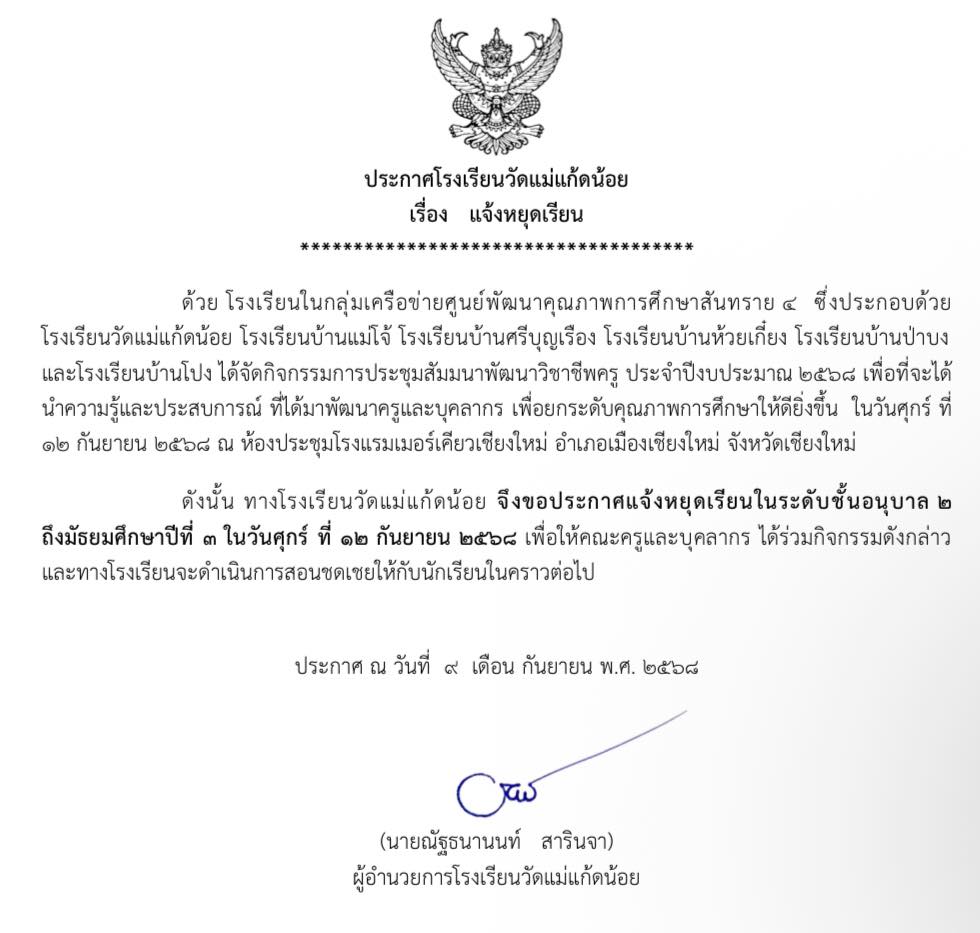 อ่านต่อ...ประกาศ โรงเรียนวัดแม่แก้ดน้อย