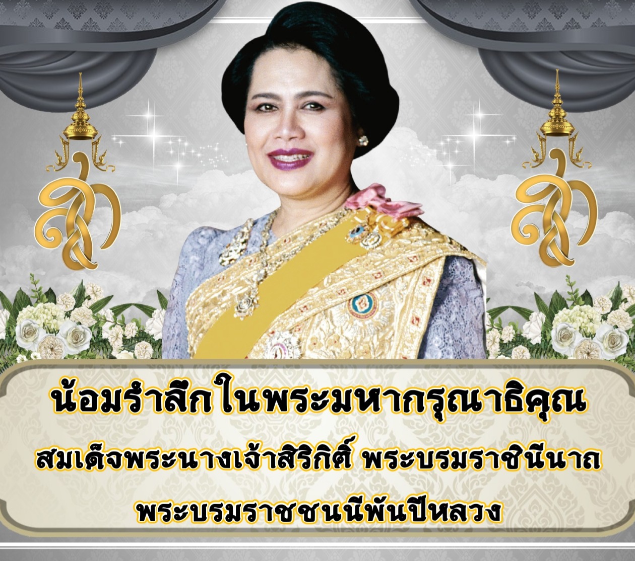 ตามรอยพระราชกรณียกิจสมเด็จพระนางเจ้าสิริกิติ์ พระบรมราชินีนาถ พระบรมราชชนนีพันปีหลวงสถิตกลางใจประชาราษฎร์ ด้วยสำนึกในพระมหากรุณาธิคุณตราบนิจนิรันดร์น้อมสำนึกในพระมหากรุณาธิคุณ "พระแม่ฟ้าแห่งปวงชนชาวไทย"